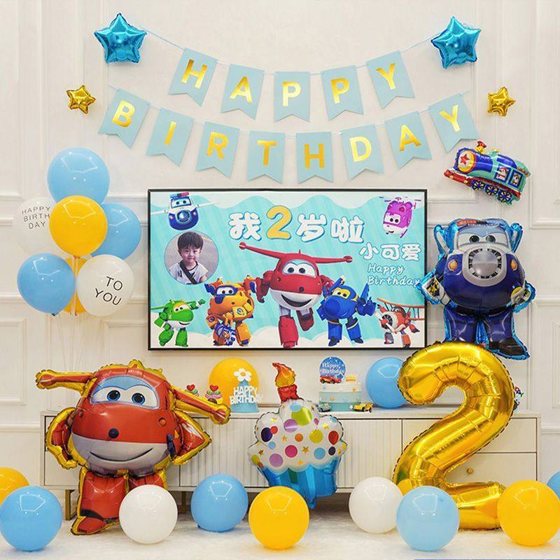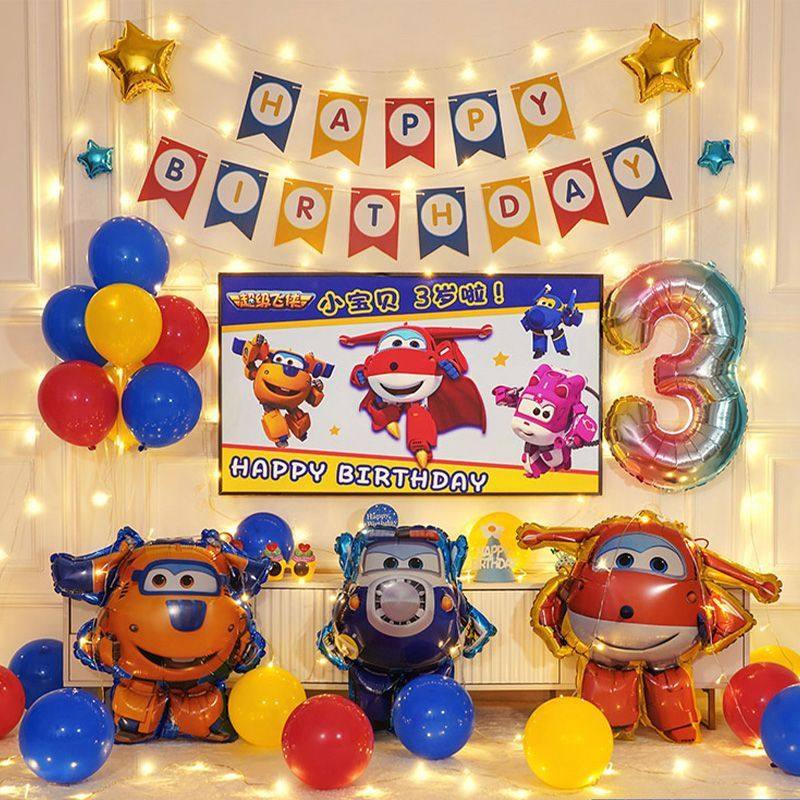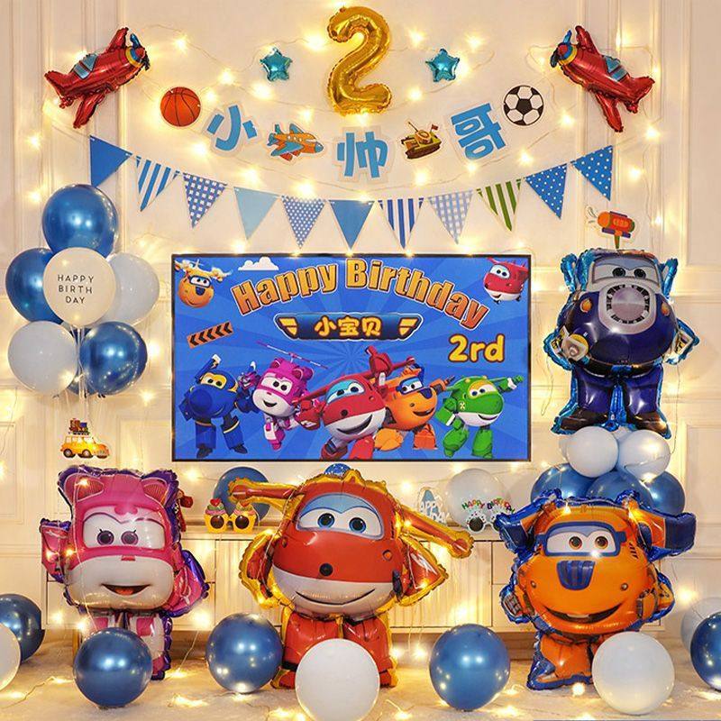 超级飞侠生日气球装饰主题派对场景布置三2岁儿童男孩背景墙宝宝6