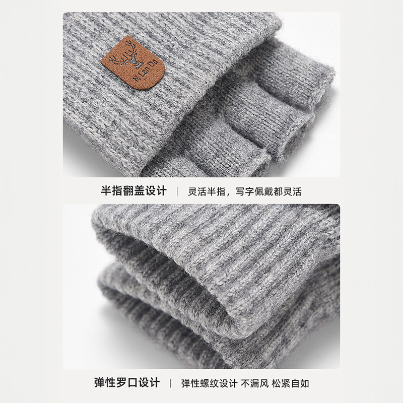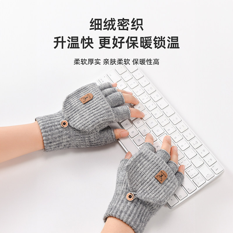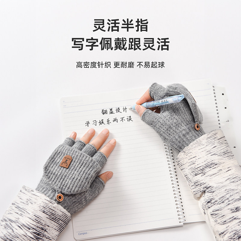 手套儿童男孩秋冬季男童小学生写字保暖女童毛线翻盖半指露指五指