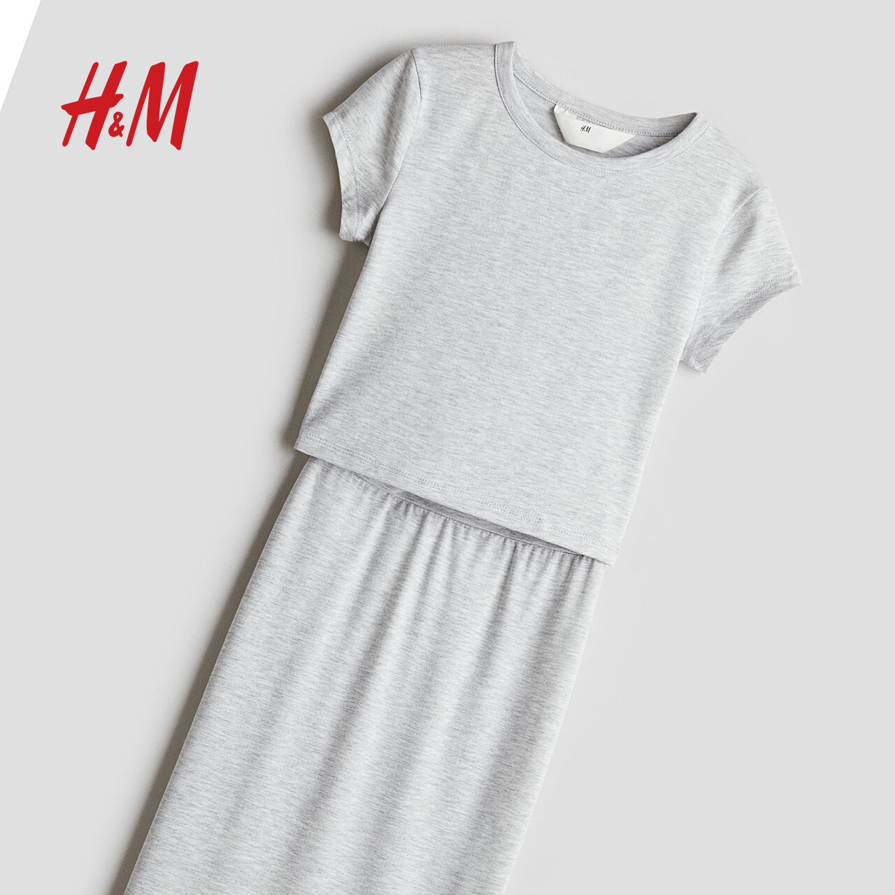 HM童装儿童女童套装2件式春季柔软短袖T恤直筒半身裙1263632