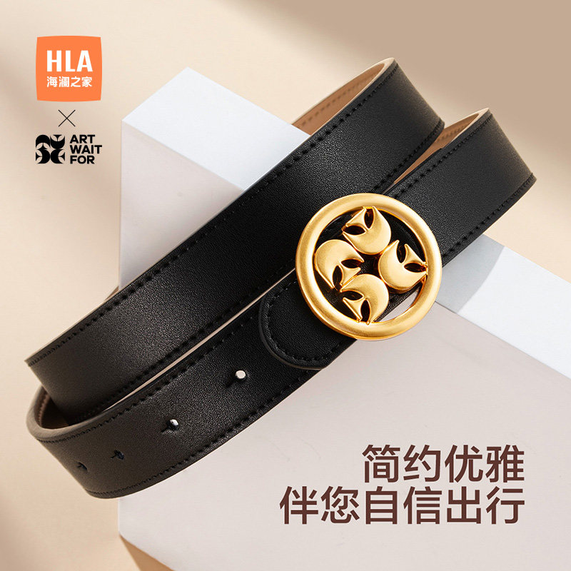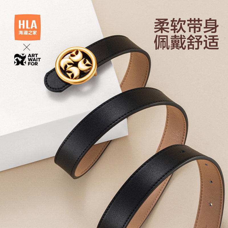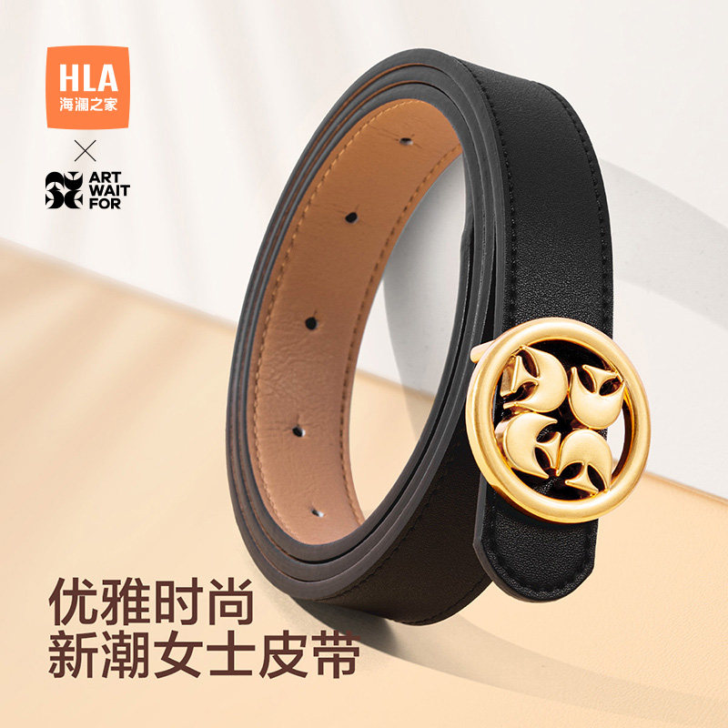 海澜之家腰带女士百搭配饰时尚板扣真牛皮优雅皮带女款平滑扣裤带