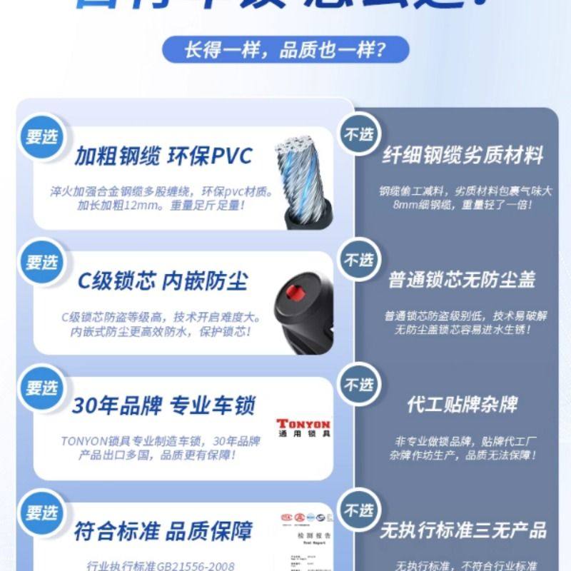 TONYON自行车锁防盗密码锁电动电瓶专用链条锁儿童便携山地单车锁