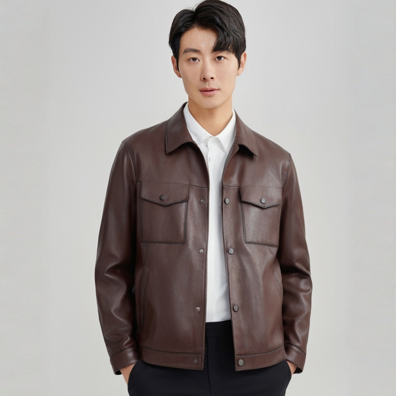 【雷总同款穿搭】迪柯尼高级感棕色系绵羊皮夹克1034工装皮衣外套