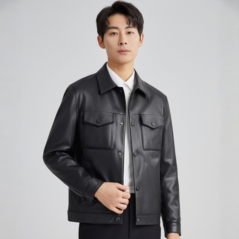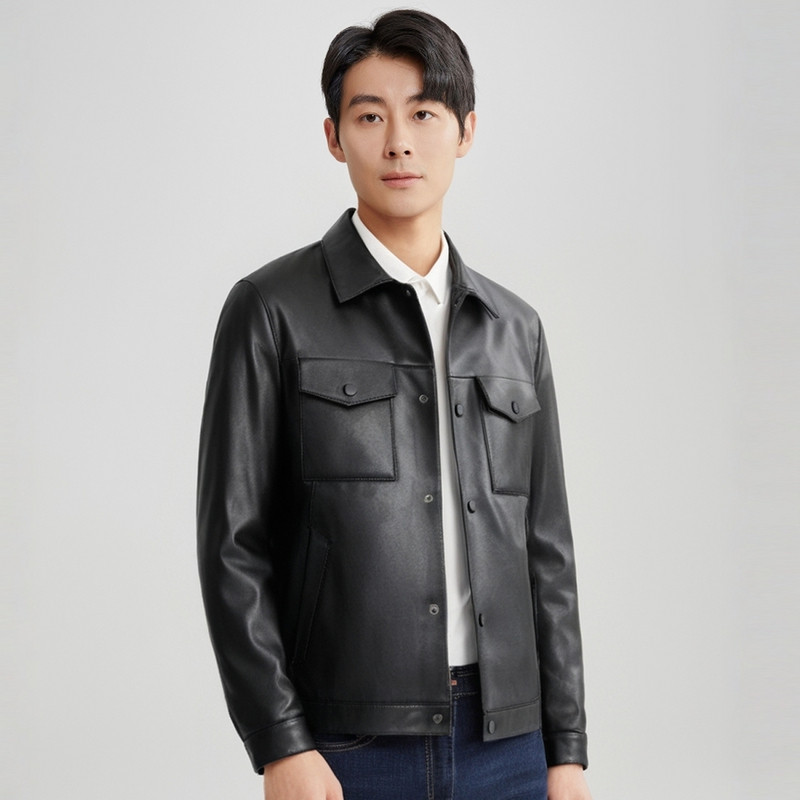 【牛皮】圣得西真皮皮衣外套男士2025款冬季商务休闲翻领皮夹克