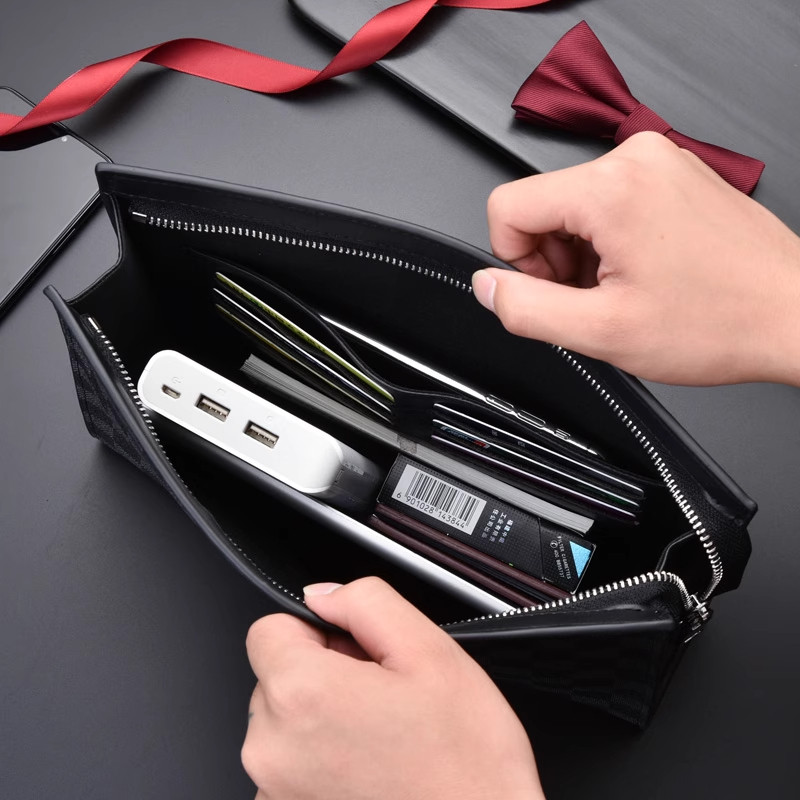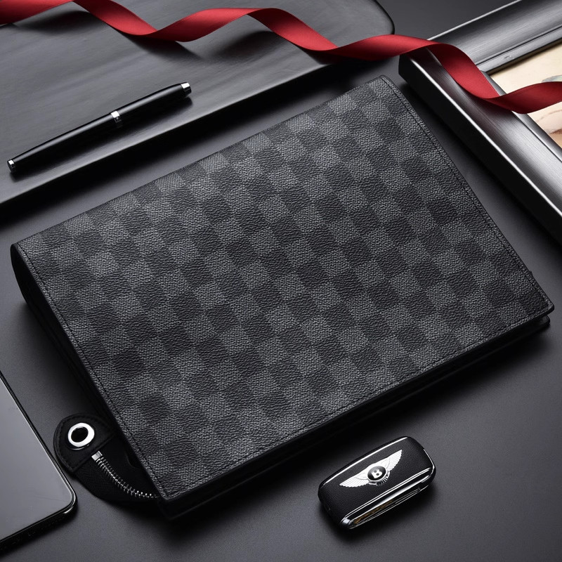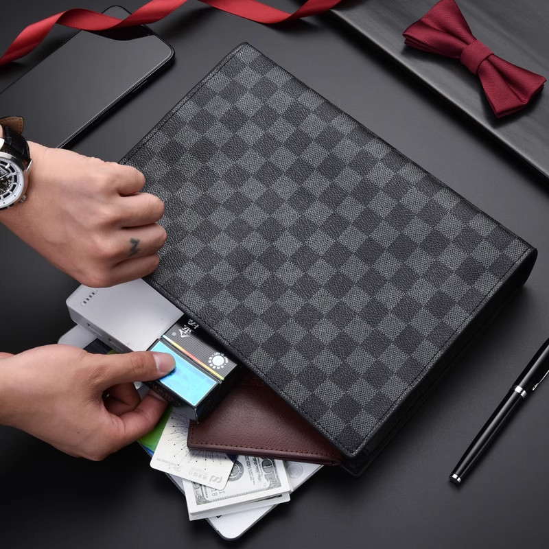 手包男士手拿包棋盘格子时尚潮男手抓包夹包大容量商务休闲手拎包