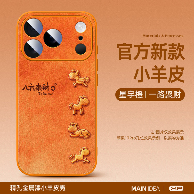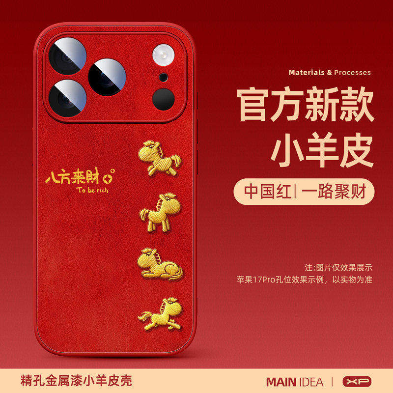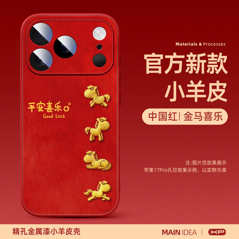 适用苹果17promax手机壳2026马年新款iphone16pro高级感15防摔14小羊皮硅胶ip13超火12红色保护套11驷马奔腾