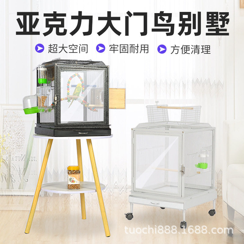 宠笼迪亚克力透明鸟笼子高端轻奢铝合金底座八哥鸟笼大号鹦鹉鸟笼