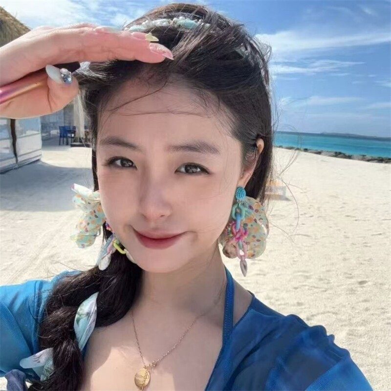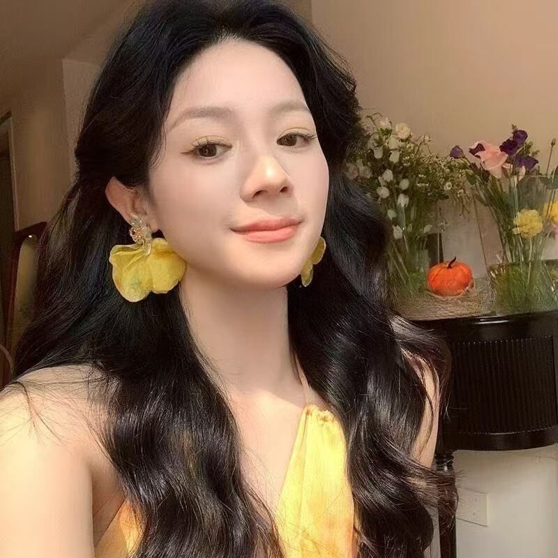 花落黄昏~度假风超仙黄色雪纺花朵耳环个性夸张耳饰耳钉耳坠饰品