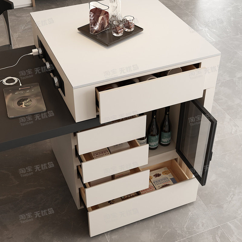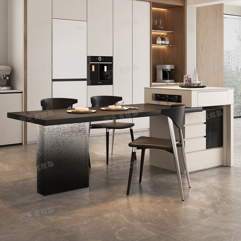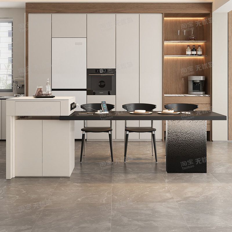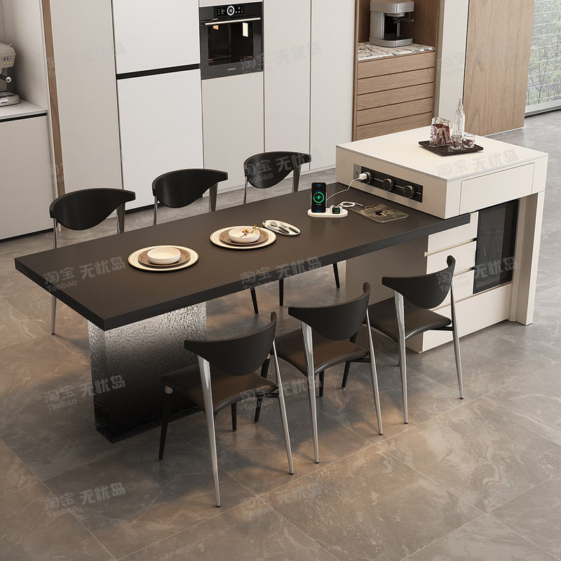意式现代餐桌岛台一体家用可伸缩厨房餐厅岩板中岛台餐桌椅组合倒