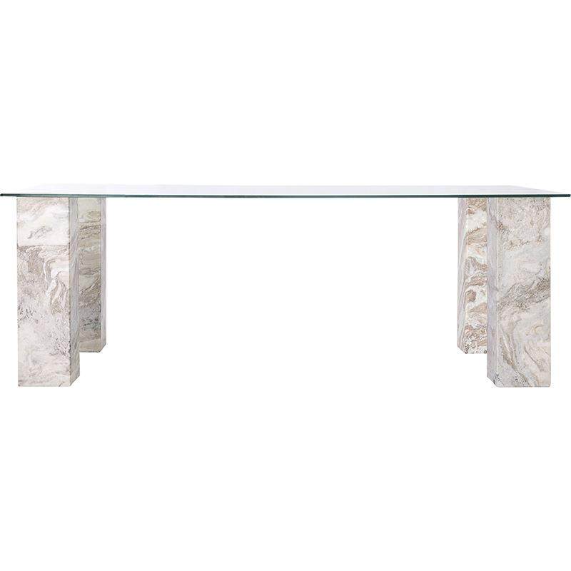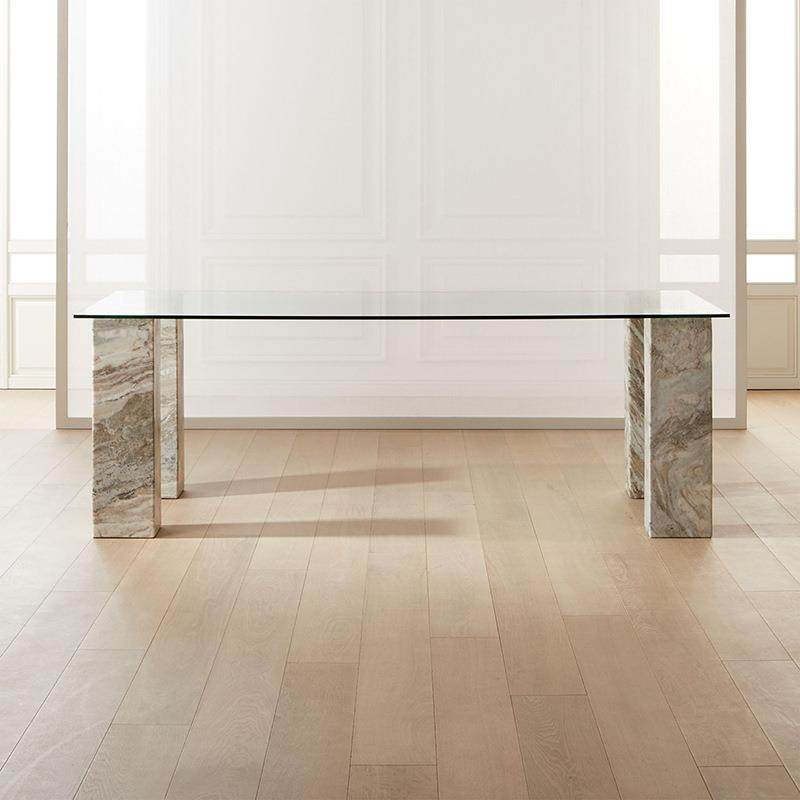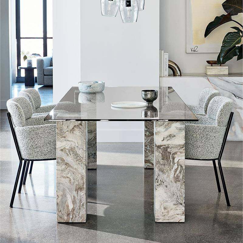餐厅钢化玻璃餐桌轻奢大理石洽谈桌简约现代长方形家用简易吃饭桌