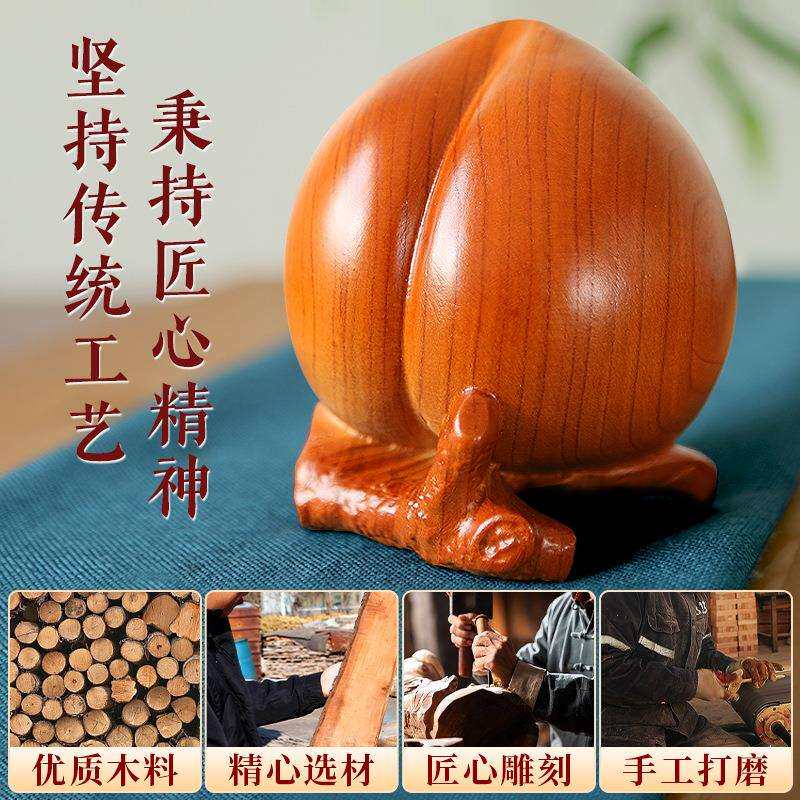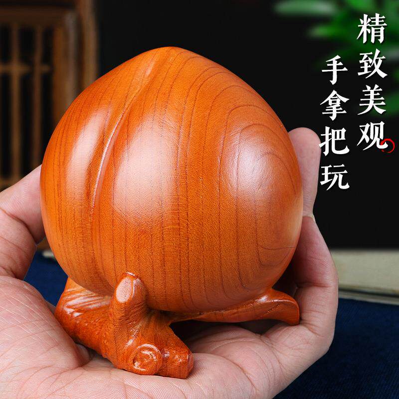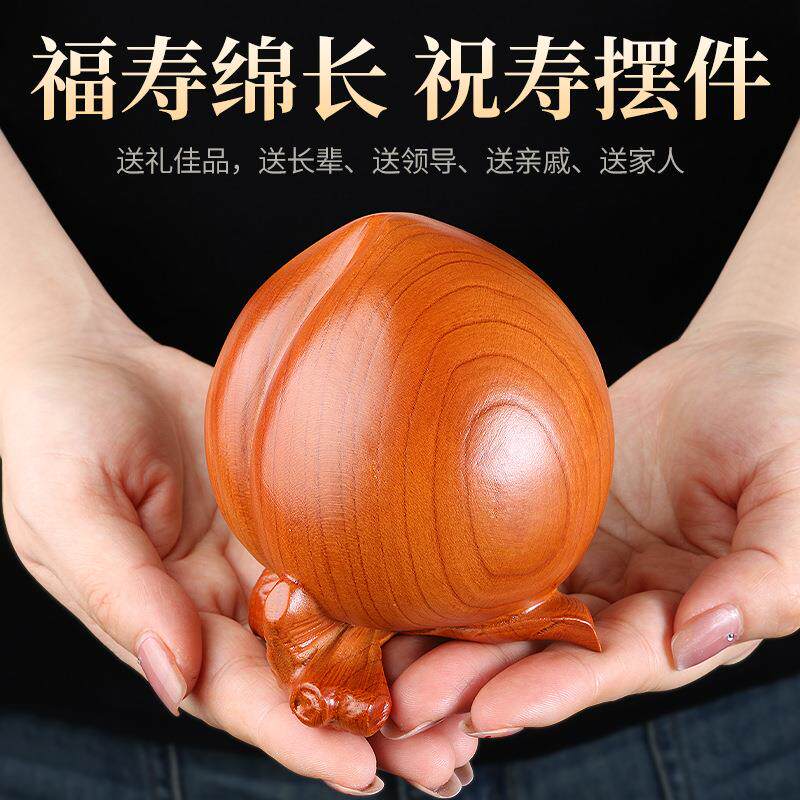 桃木寿桃摆件蟠桃祝寿寿礼仙桃木雕工艺品摆放办公室老人祝寿手把