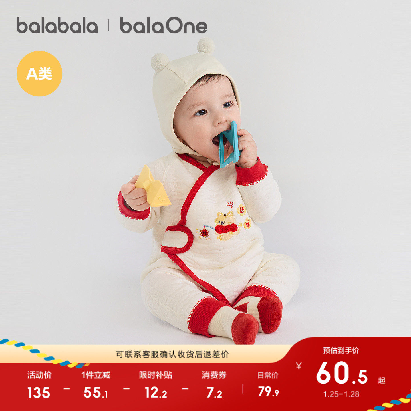 巴拉巴拉新生婴儿连体衣冬装2025款秋冬宝宝A类棉服内着哈衣爬服