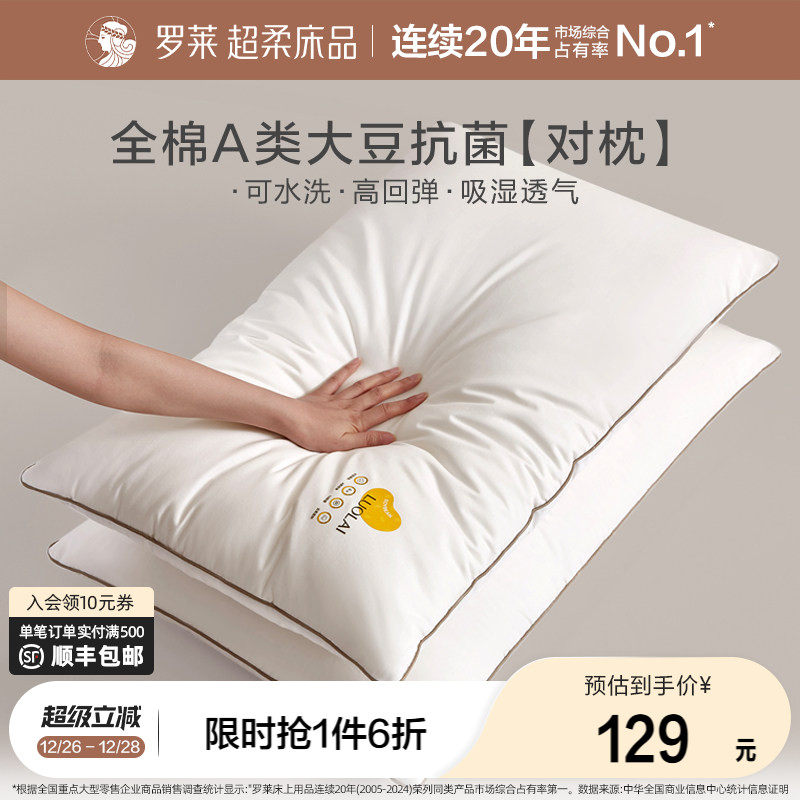 罗莱家纺枕芯全棉A类抗菌对枕学生宿舍成人枕头一对装