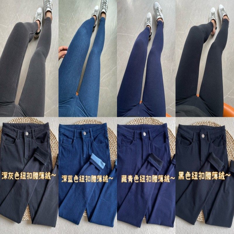 薄绒保暖四面弹力包裹好高腰显瘦紧身小脚黑灰针织仿牛仔裤女秋冬