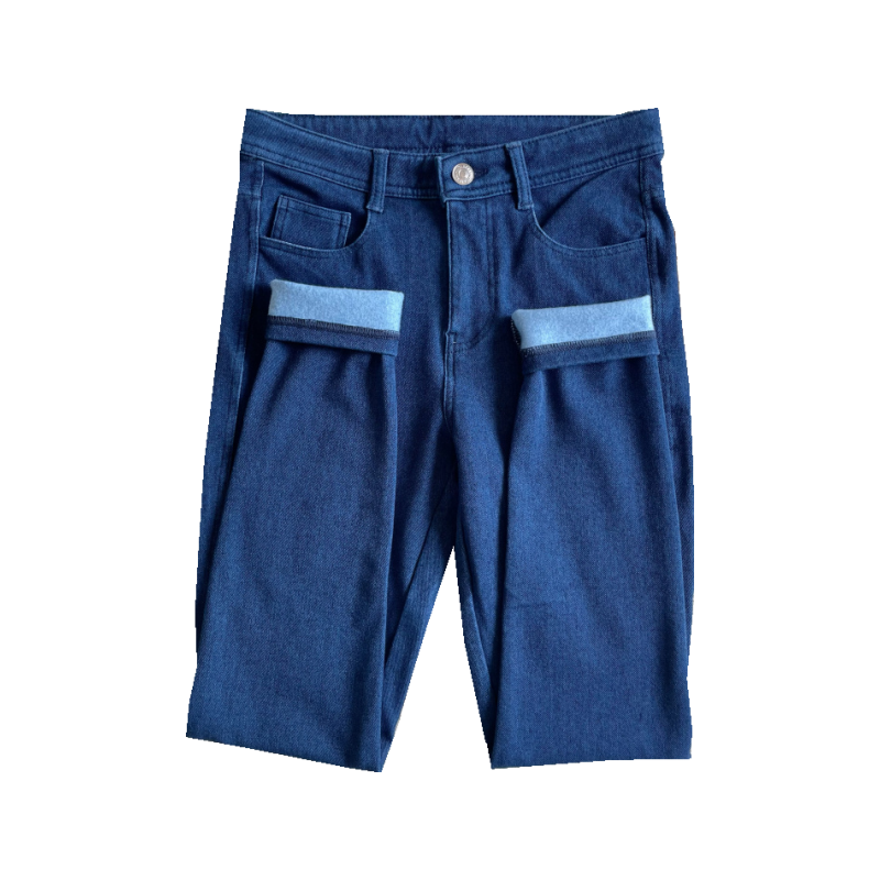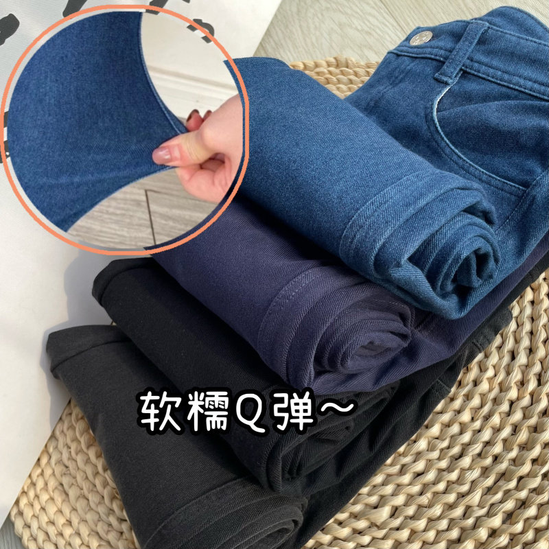 欧货加绒加厚牛仔裤女冬季新款大码胖mm梨形身材小个子直筒阔腿裤