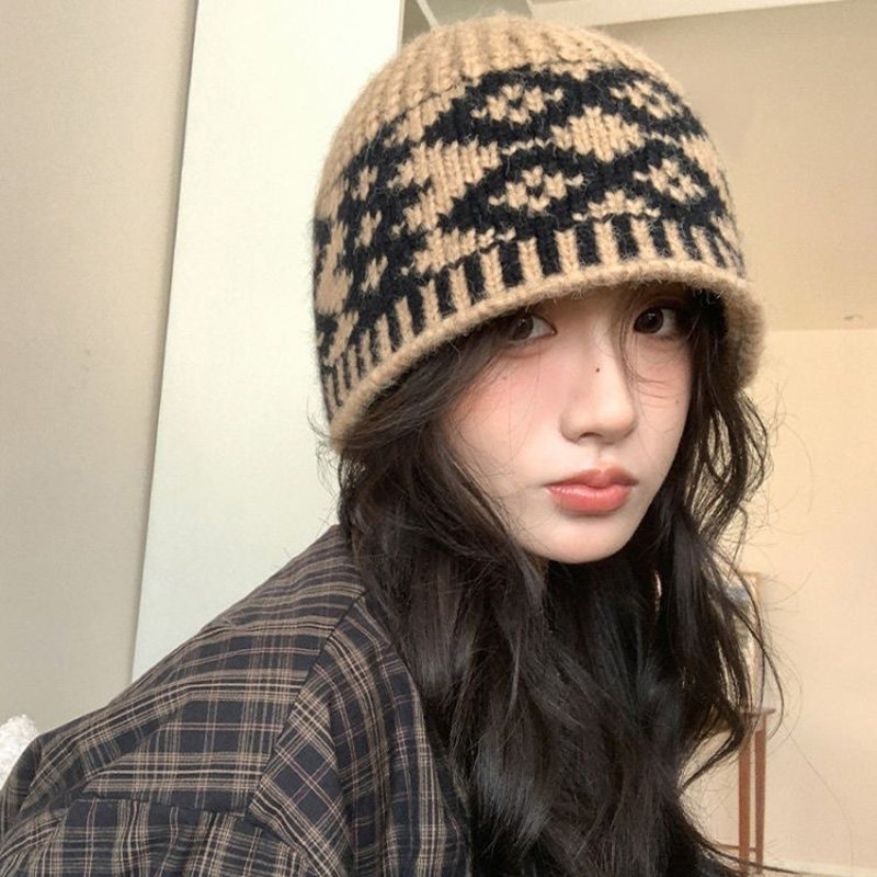 费尔岛针织帽女冷帽电动车加厚保暖大头围帽女毛绒帽秋冬显脸小