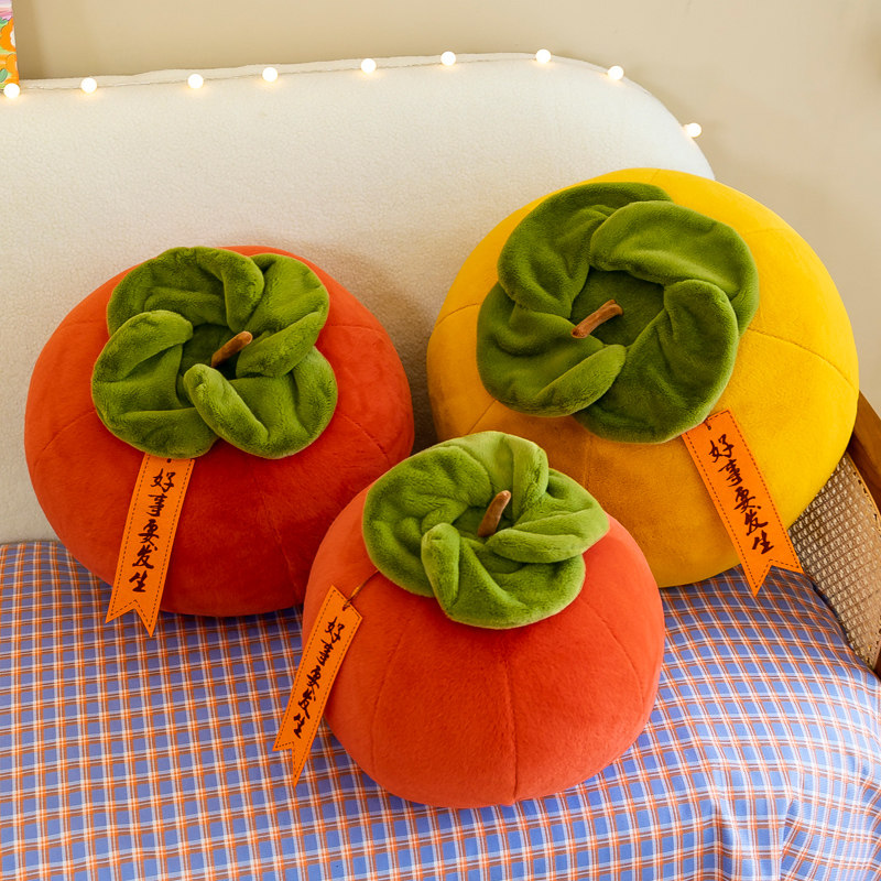 可爱仿真柿子抱枕毛绒玩具公仔靠垫柿柿如意摆件礼品生日礼物水果