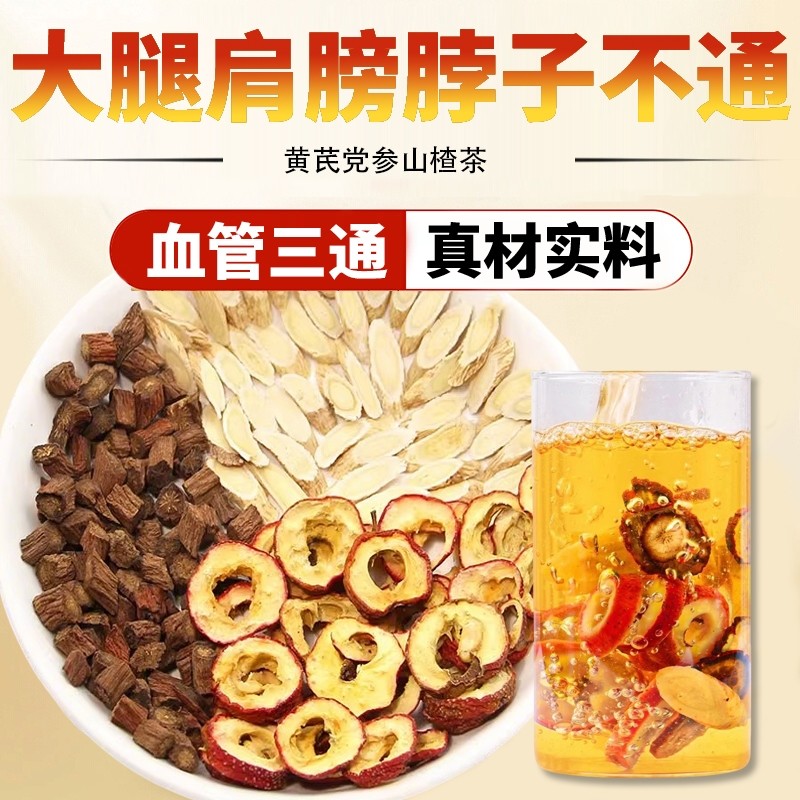 三通茶山楂丹参黄芪组合茶血堵不通堵塞养生调理泡茶泡水喝药党参