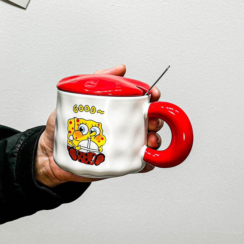 创意个性ins超萌可爱陶瓷马克杯带盖勺男女生情侣家用早餐喝水杯