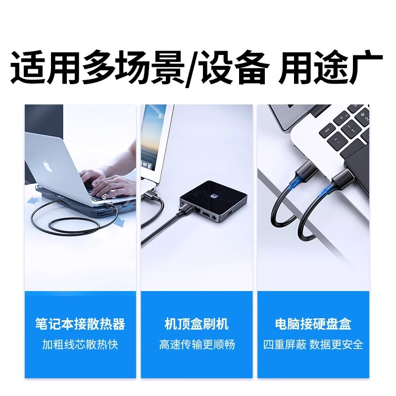 绿联双头usb3.0数据线公对公两双头连接口延长线转换传输移动硬盘盒笔记本电脑散热器供充电机顶盒刷机USB2.0