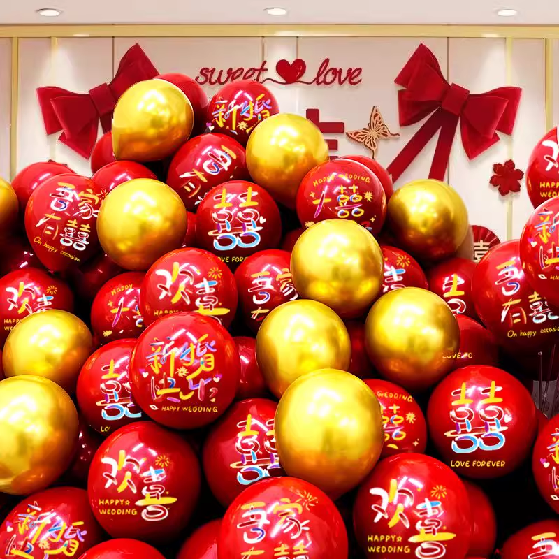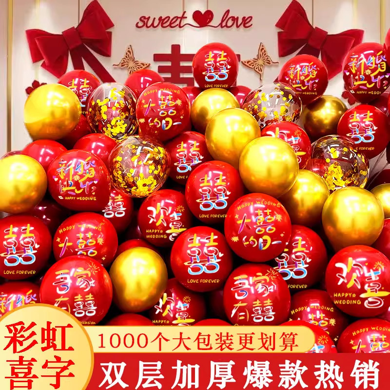 婚庆气球多巴胺喜字结婚布置婚房装饰红色婚礼订婚场景氛围套装