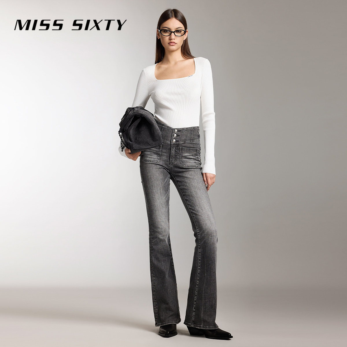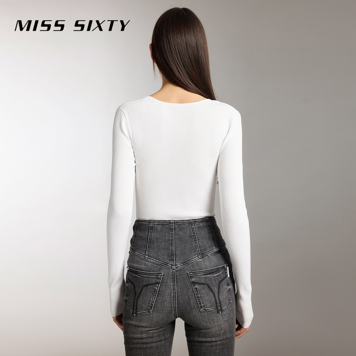 Miss Sixty针织衫女简约气质方型领短款修身显瘦弹力长袖上衣毛衣