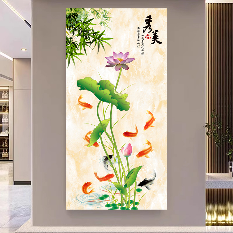 荷花图卫生间贴画莲花厕所专用化解方形鲤鱼装饰画防水门