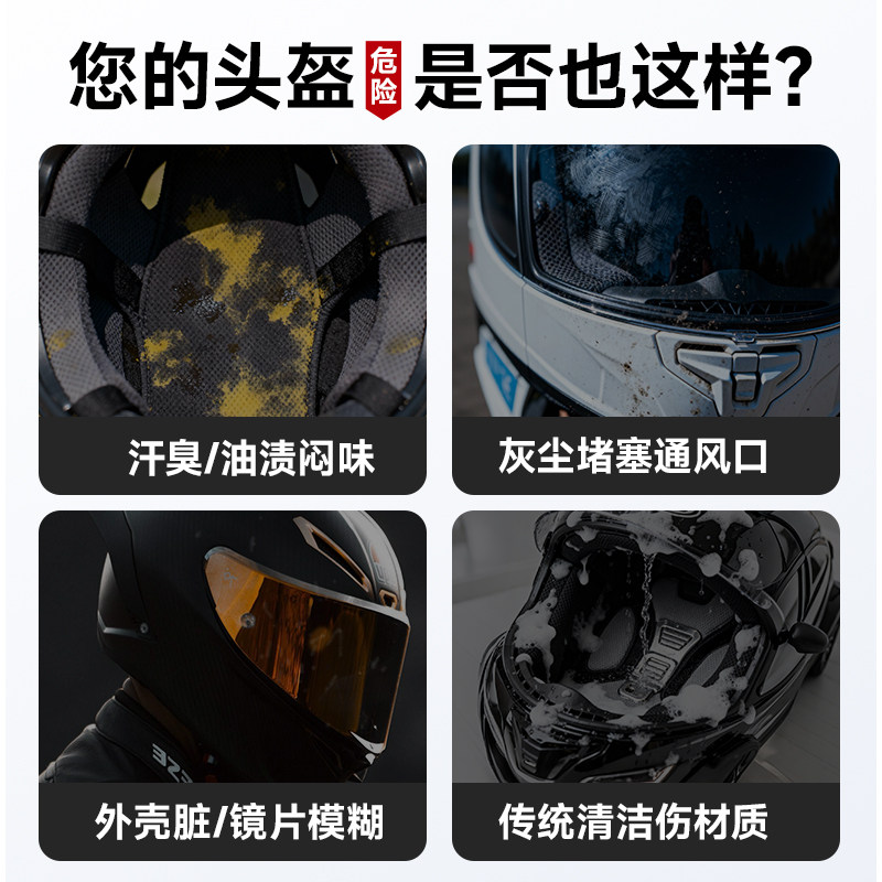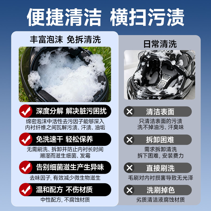 头盔清洁剂摩托车清洁剂泡沫型免水洗除臭抑菌干洗喷剂机车清洗剂