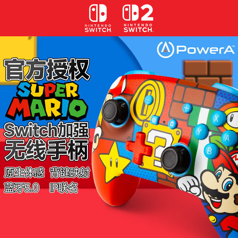 PowerA任天堂官方授权switch pro手柄 NS无线游戏手柄蓝牙5.0六轴体感皮卡丘 马里奥 赛车动森塞尔达 switch2