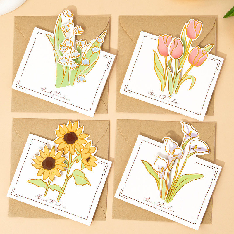 3d立体鲜花教师节贺卡送老师同学2025新款可代手写空白祝福卡片小学生送教师感谢带信封卡片纸创意留言感谢卡
