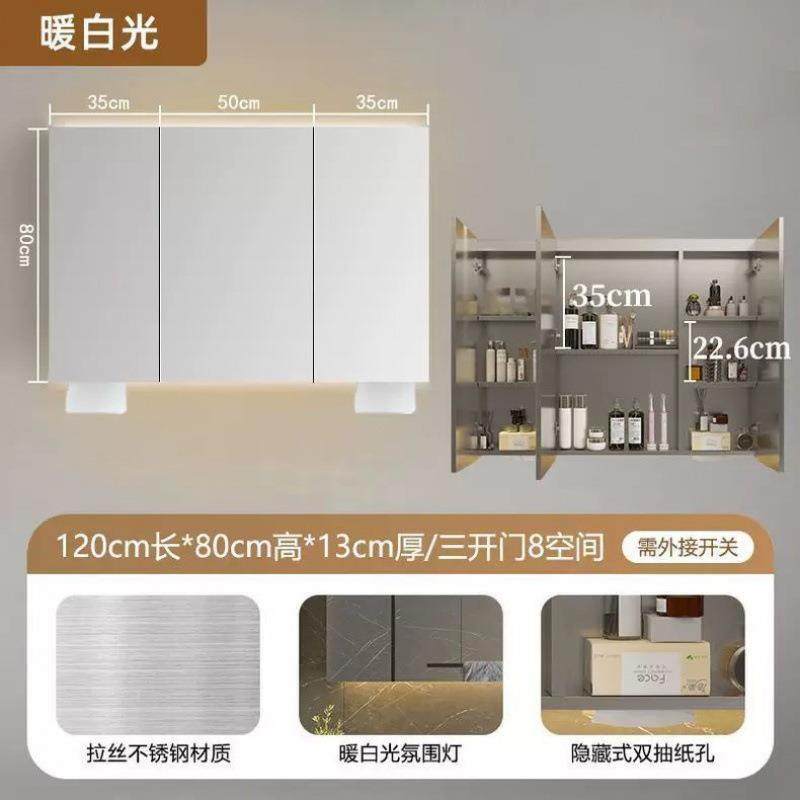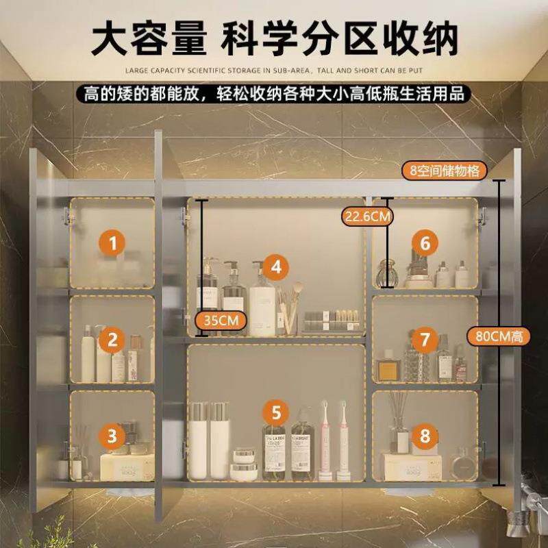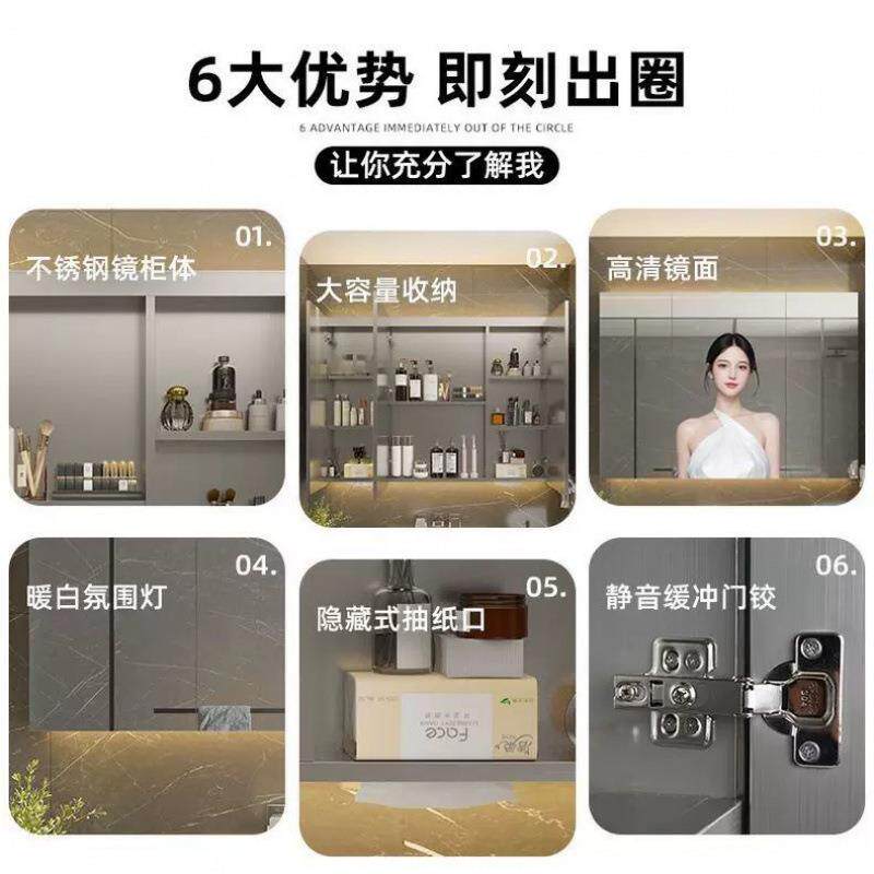 智能不锈钢浴室镜柜卫生间镜子收纳一体镜箱挂墙式厕所化妆镜单独