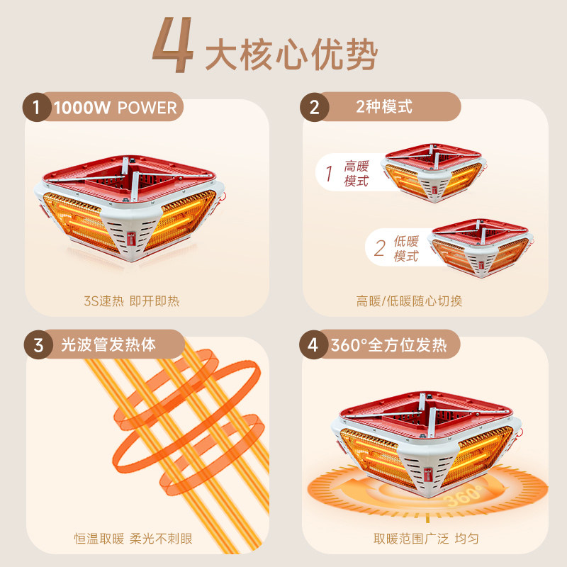 麻将机取暖器麻将桌下烤火炉家用节能省电四脚四口专用电暖炉通用