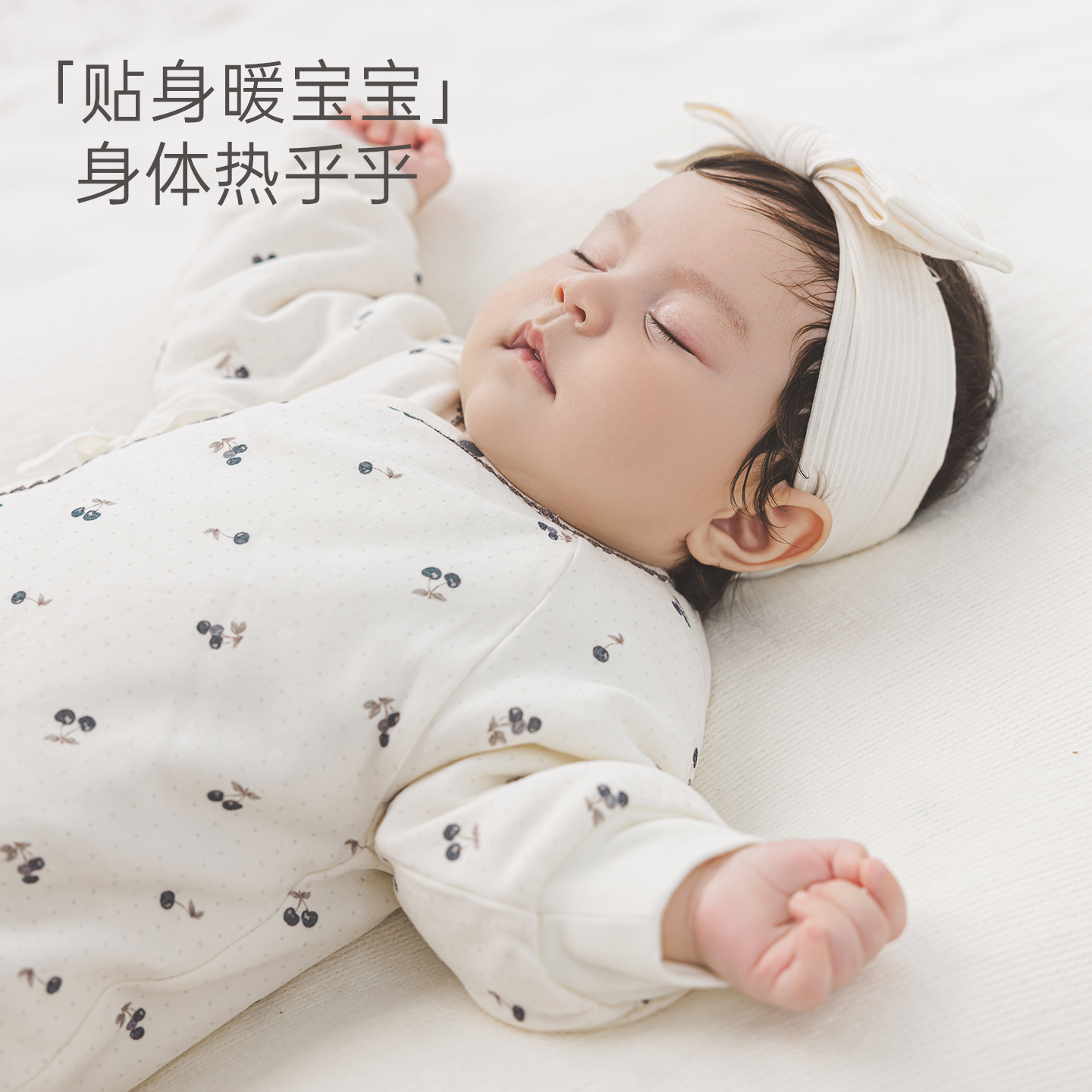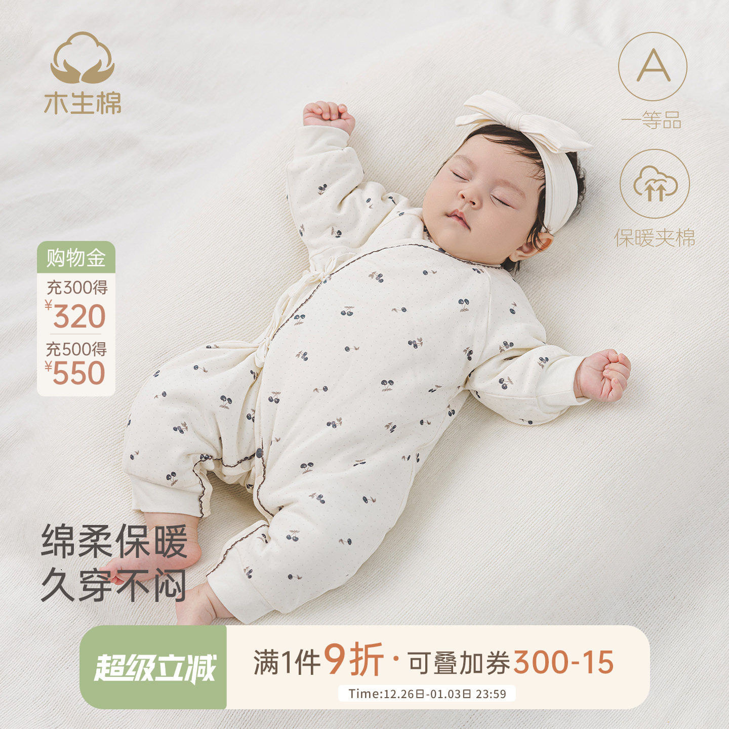 木生棉新生儿冬季绑带棉服连体衣婴儿女宝宝恒温保暖抗菌夹棉哈衣