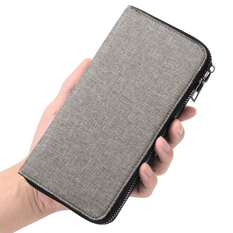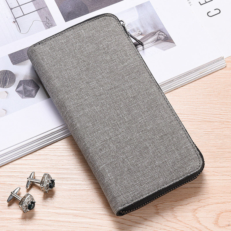 男士钱包长款拉链帆布手拿包多功能大容量手包简约学生年轻人钱夹