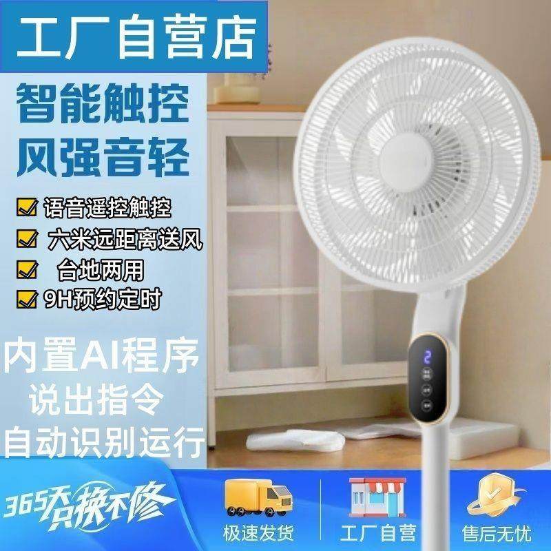电风扇落地扇家用轻音立式风力电扇宿舍小型台式节能摇头语音风扇