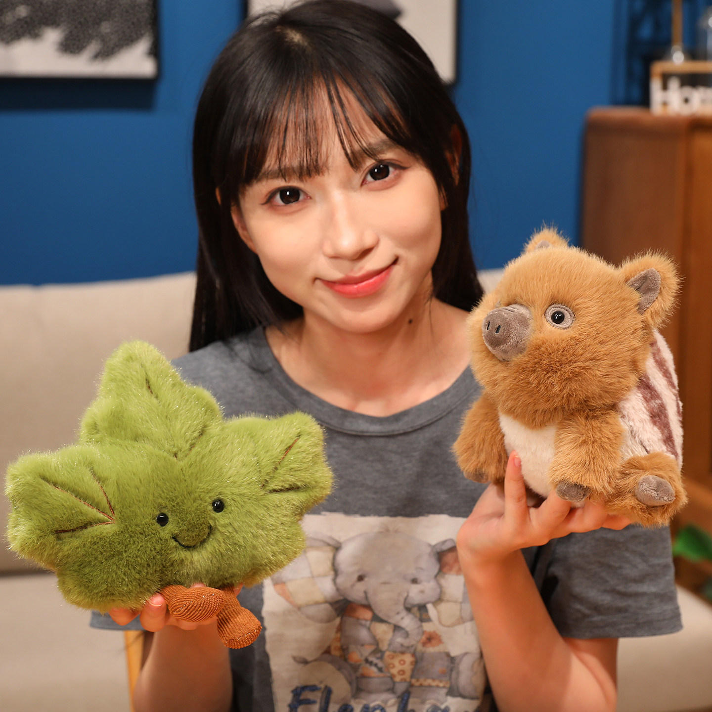 创意仿真野猪枫叶公仔毛绒玩偶送儿童安抚布娃娃儿童睡觉桌伴摆件