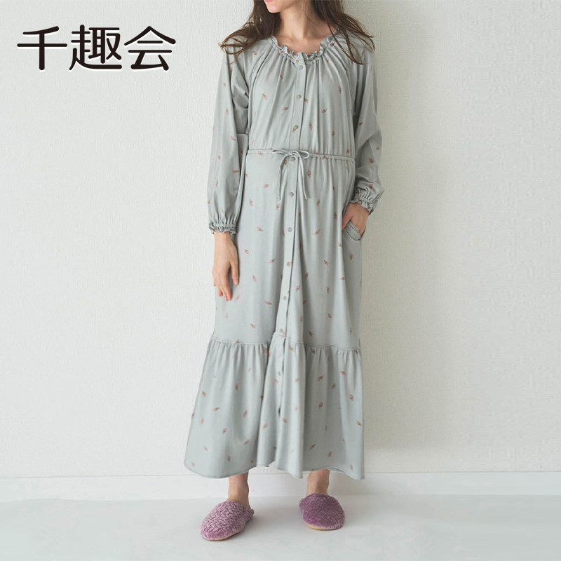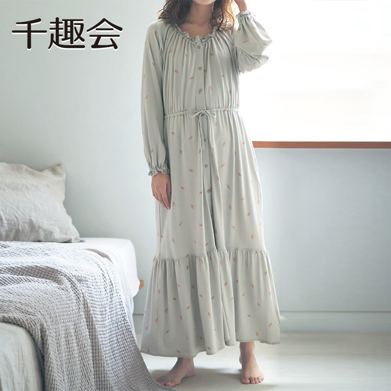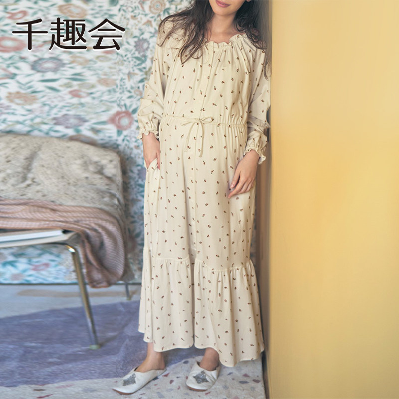 千趣会孕妇装春秋款孕妈妈连衣裙产后方便哺乳两穿棉质中长款裙子