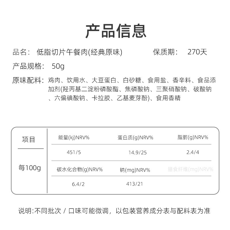 鲨鱼菲特鸡肉午餐肉三明治专用非减低脂肥即食儿童早餐鸡肉零食品