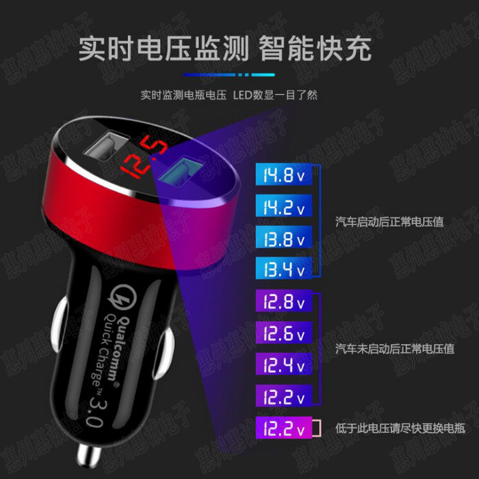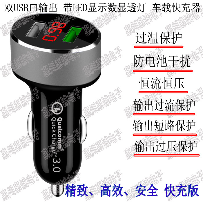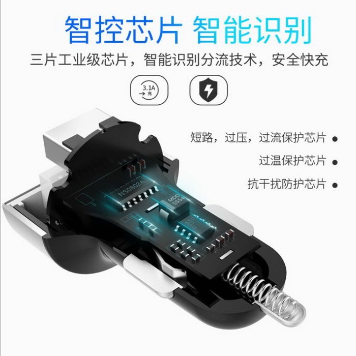 QC3.0 车载充电器 手机快充 多功能型车用 双usb转换插头点烟3.1A
