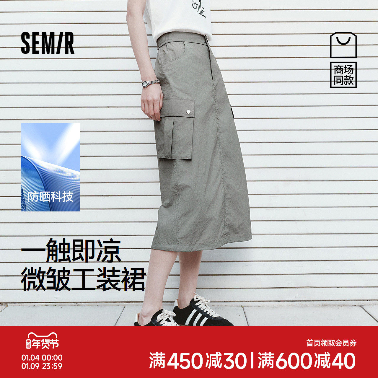 舒适半松紧腰 潮酷工装裙 凉感防晒UPF50+