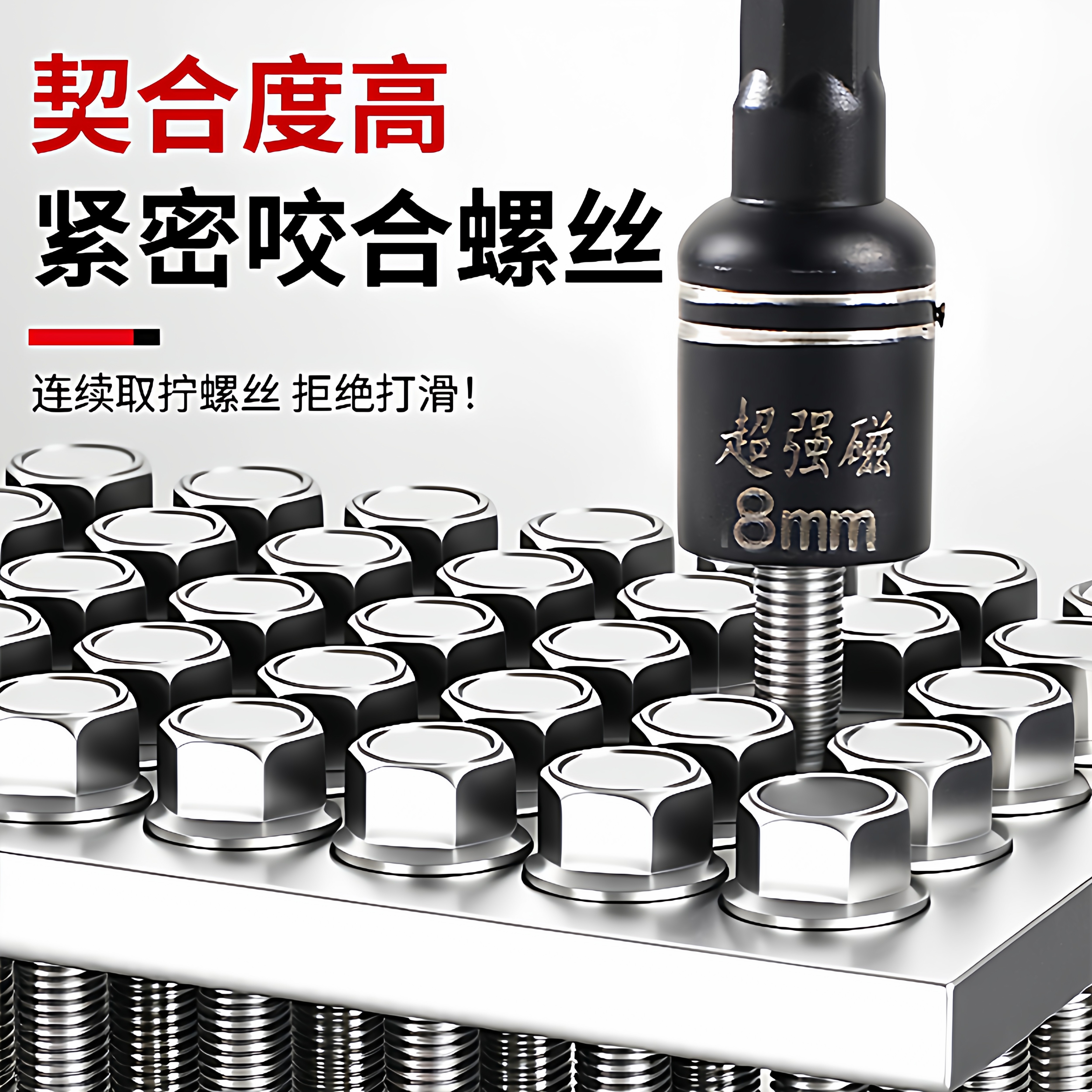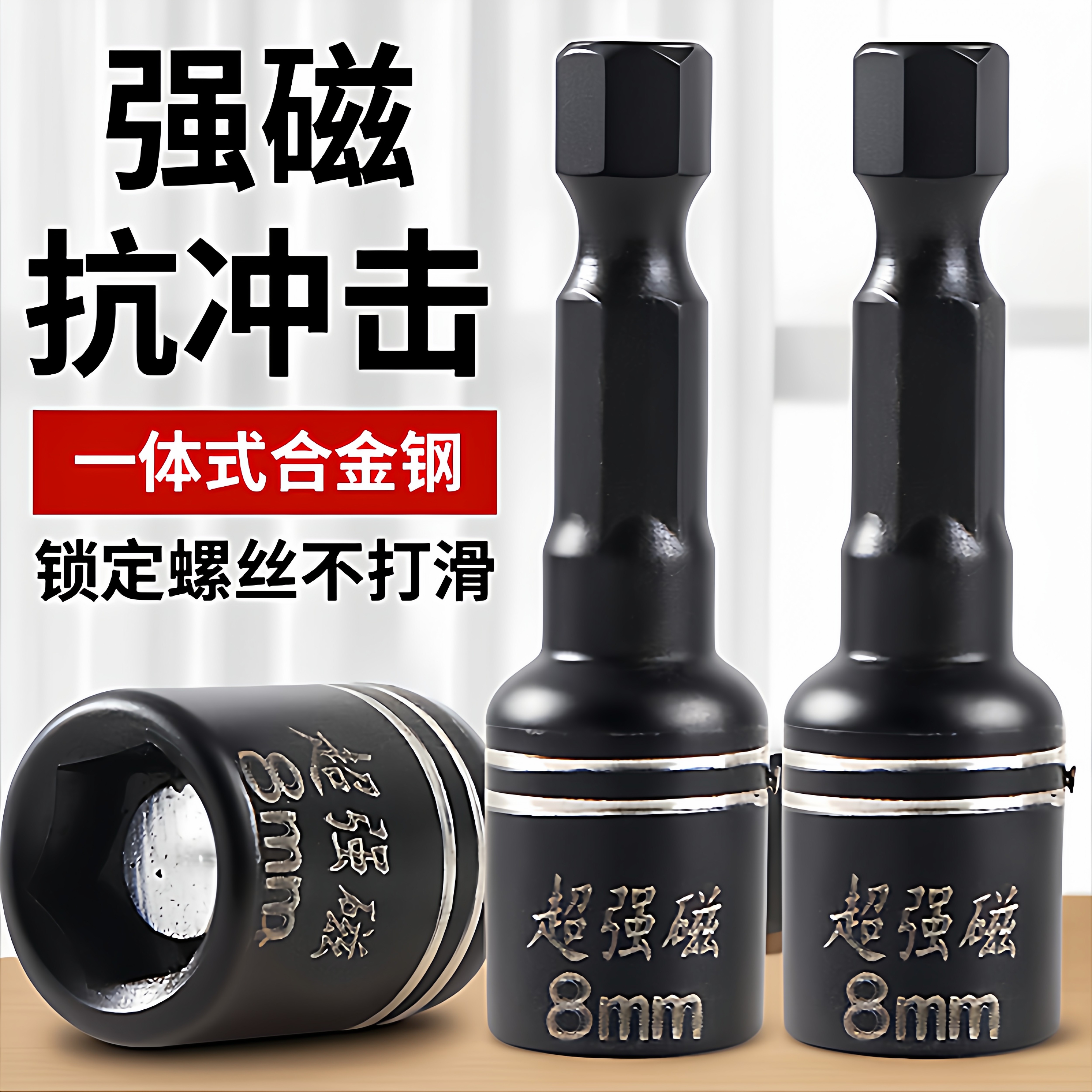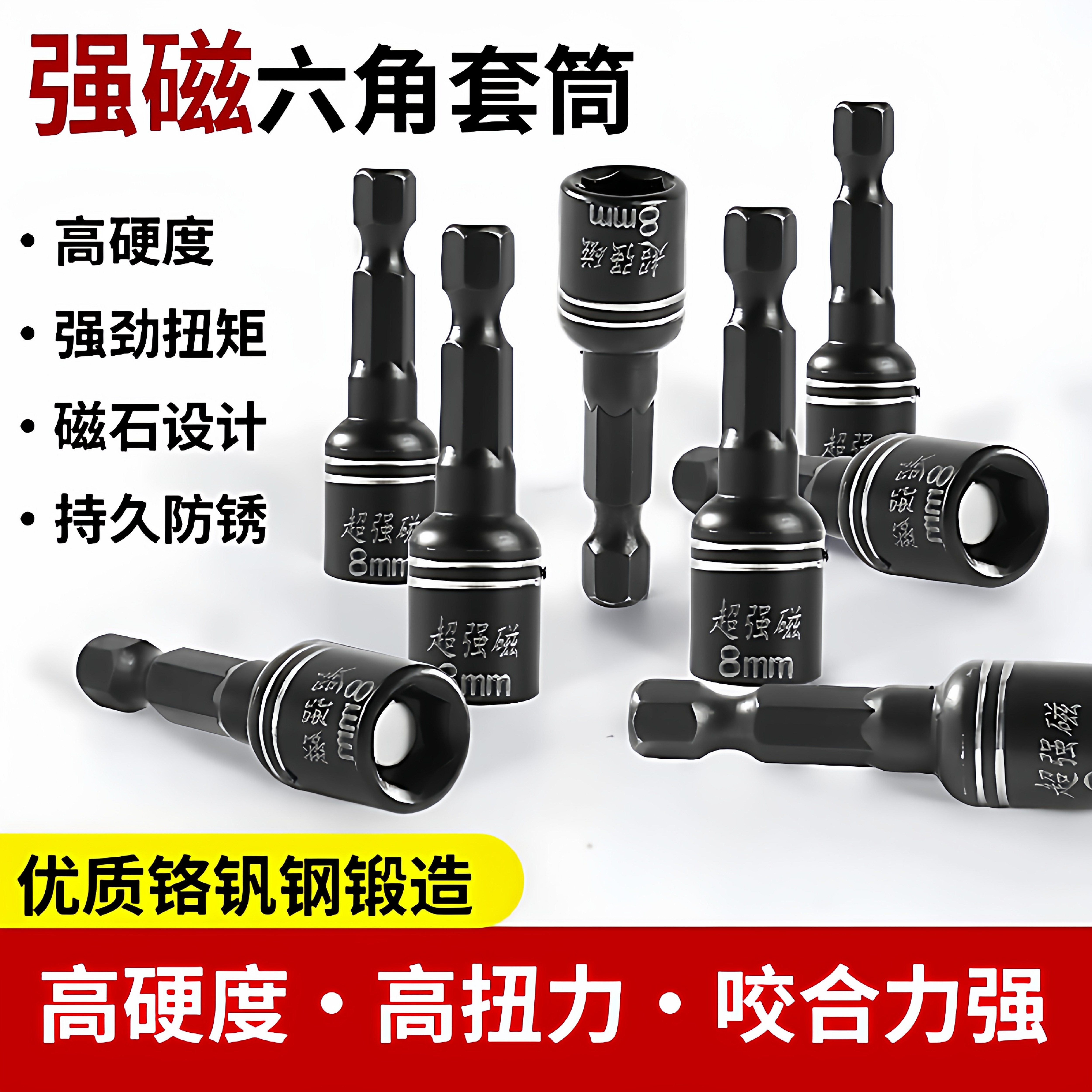 强磁套筒头内六角外自攻螺丝燕尾丝批头电动扳手电钻套头套装8mm