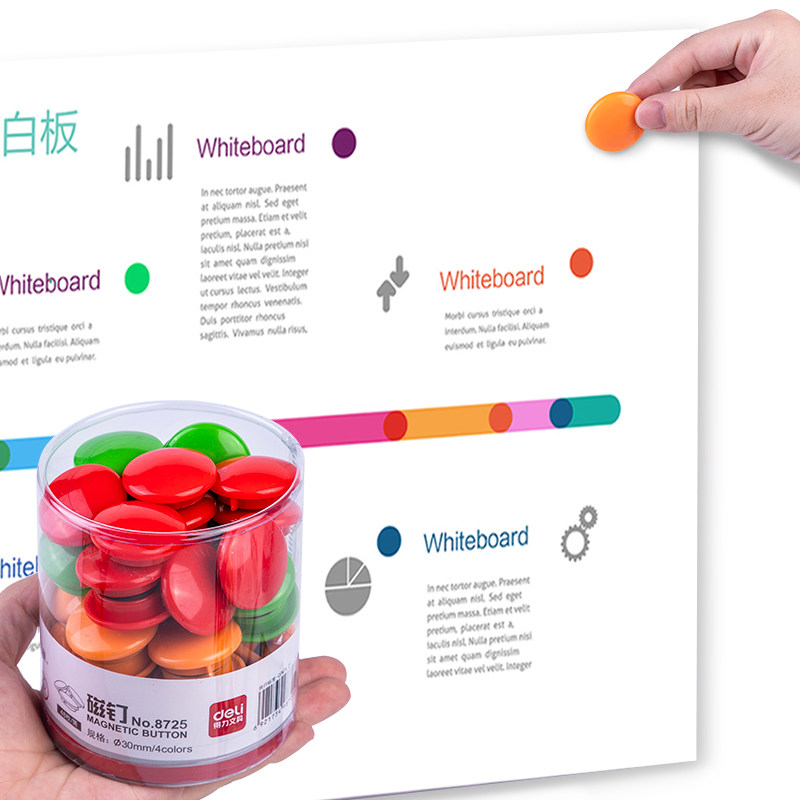 得力8725筒装磁钉彩色白板磁扣磁钉白板磁铁黑板贴磁扣磁性磁贴强力贴教师用品吸铁石吸钉教学用具吸铁磁力扣