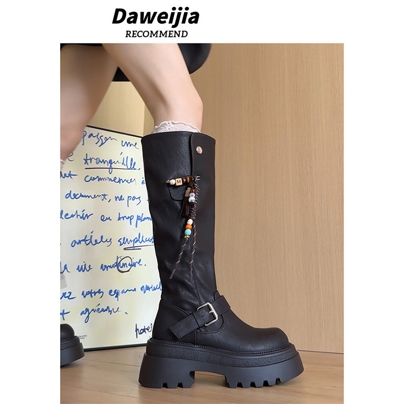 大东v口长筒靴女2025新款秋冬靴子小个子厚底增高长靴高筒骑士靴