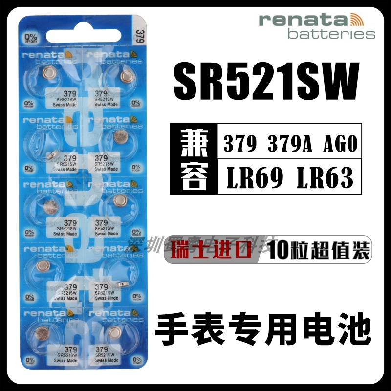 Renata瑞士进口AG0 SR521SW手表电子LR63 379纽扣电池LR521石英表