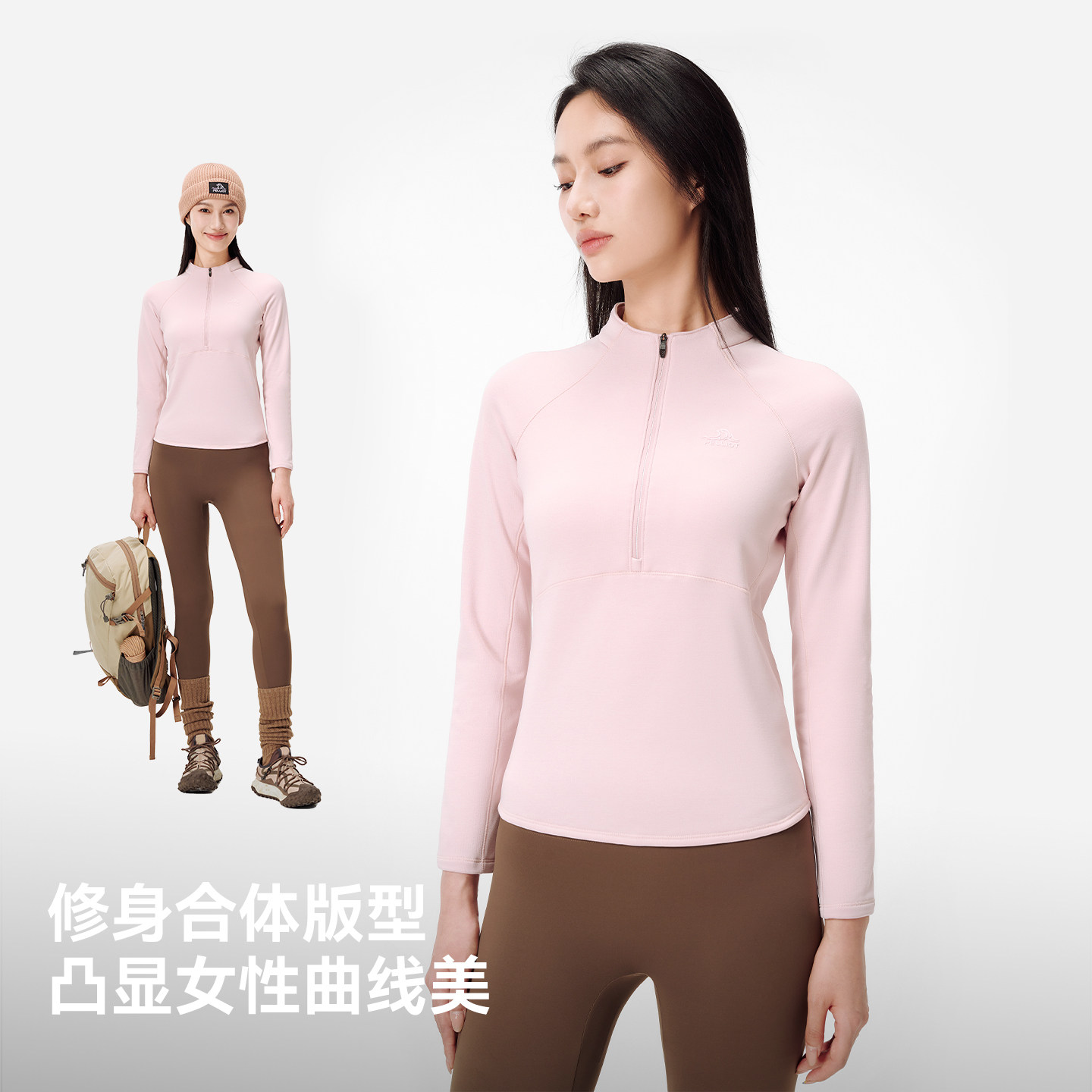 蕉下半拉链摇粒绒打底衫女士秋冬修身新款保暖户外上衣长袖T恤
