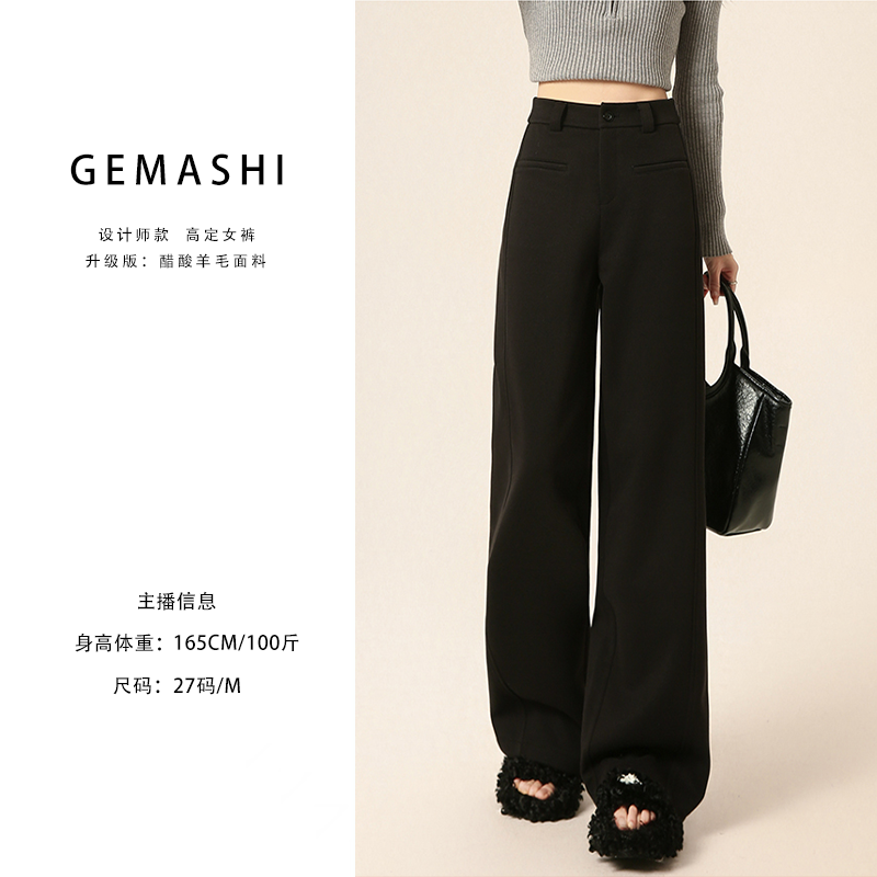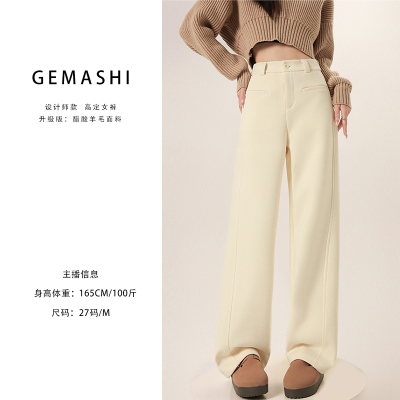 【醋酸生态羊毛】~窄版阔腿裤秋冬加厚高腰垂感显瘦休闲直筒裤