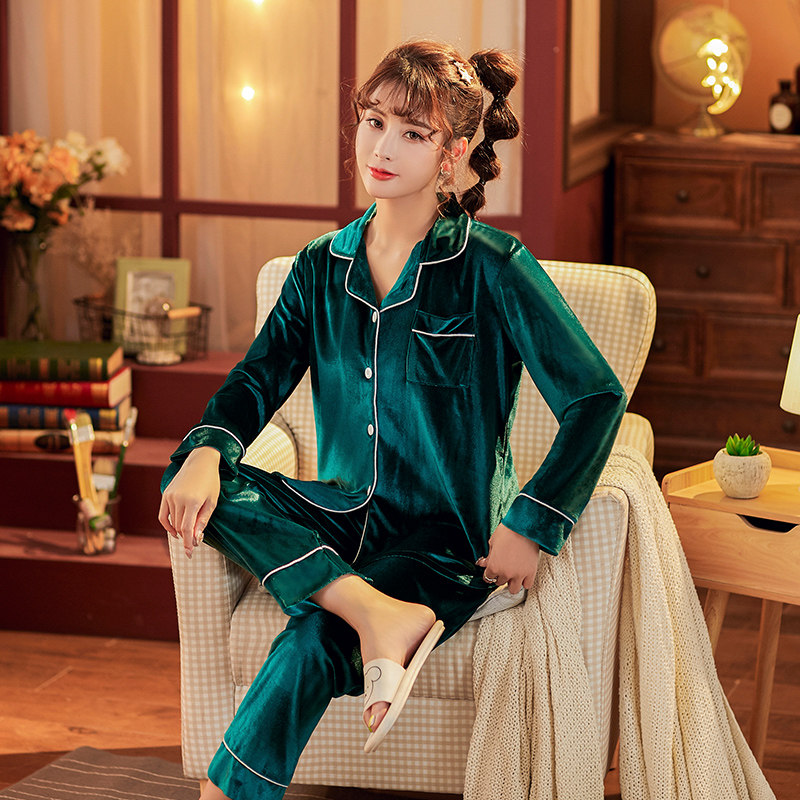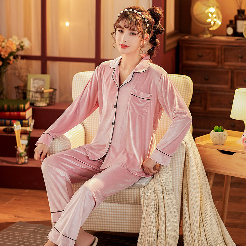 红豆金丝绒睡衣女秋冬长袖薄款大码胖MM200斤家居服春秋季可外穿