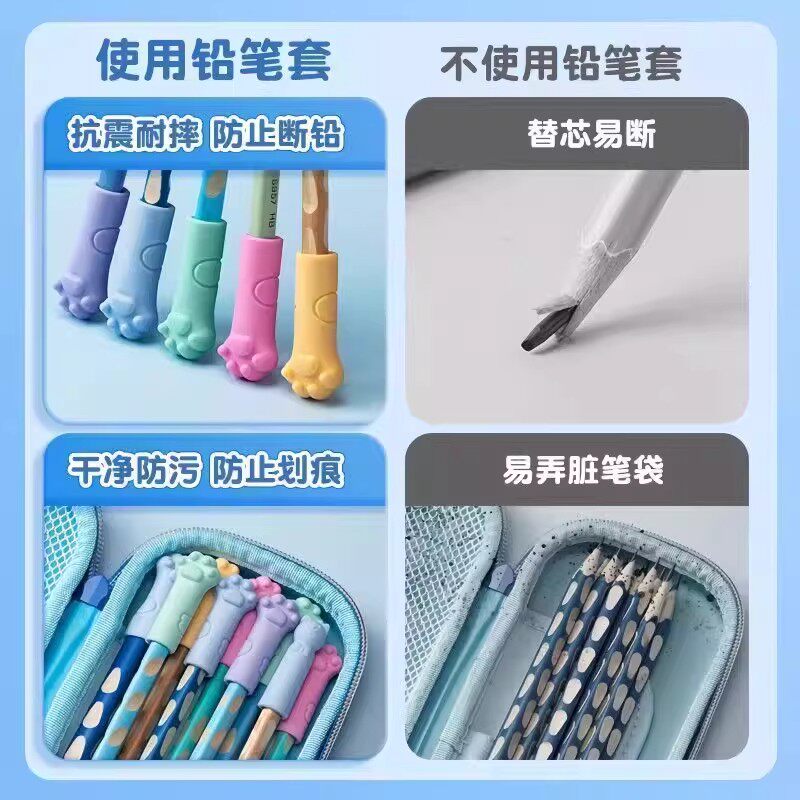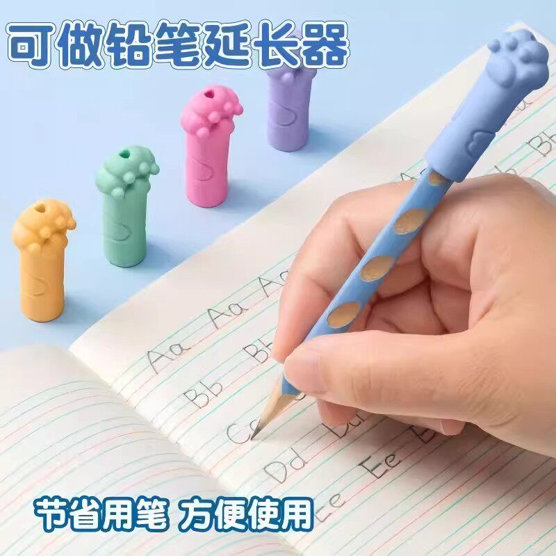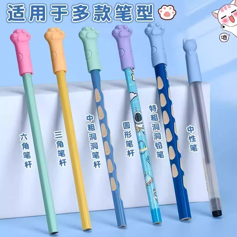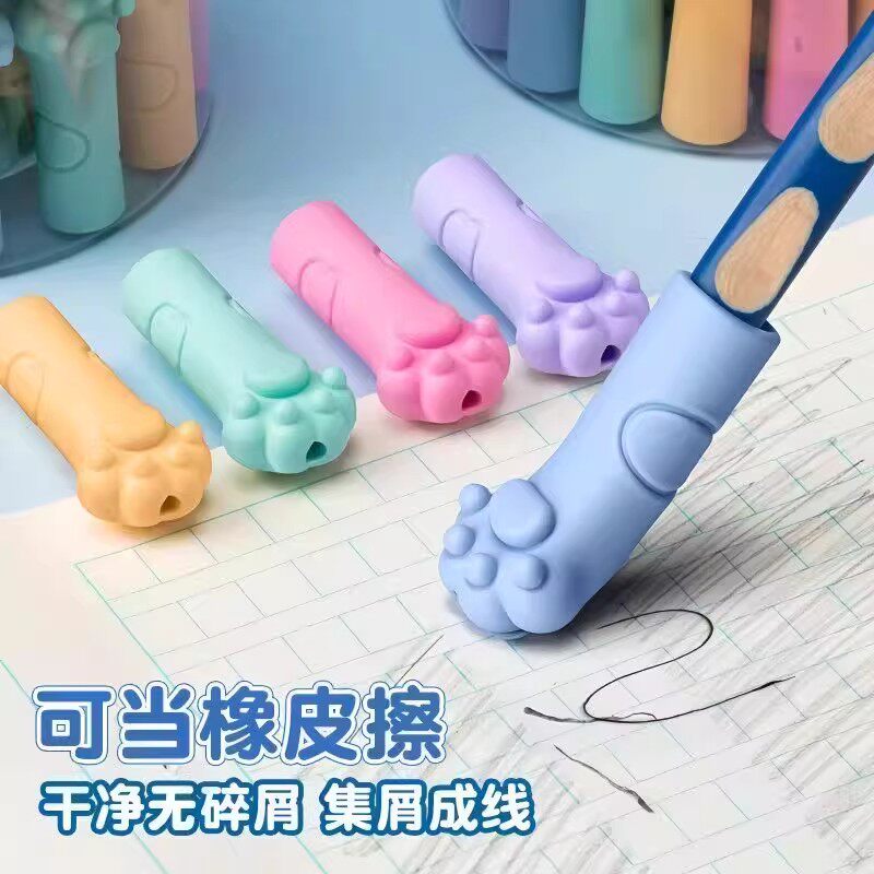 铅笔帽橡皮擦卡通猫爪形防摔防断笔帽款反复用小学生握笔练字牙贴