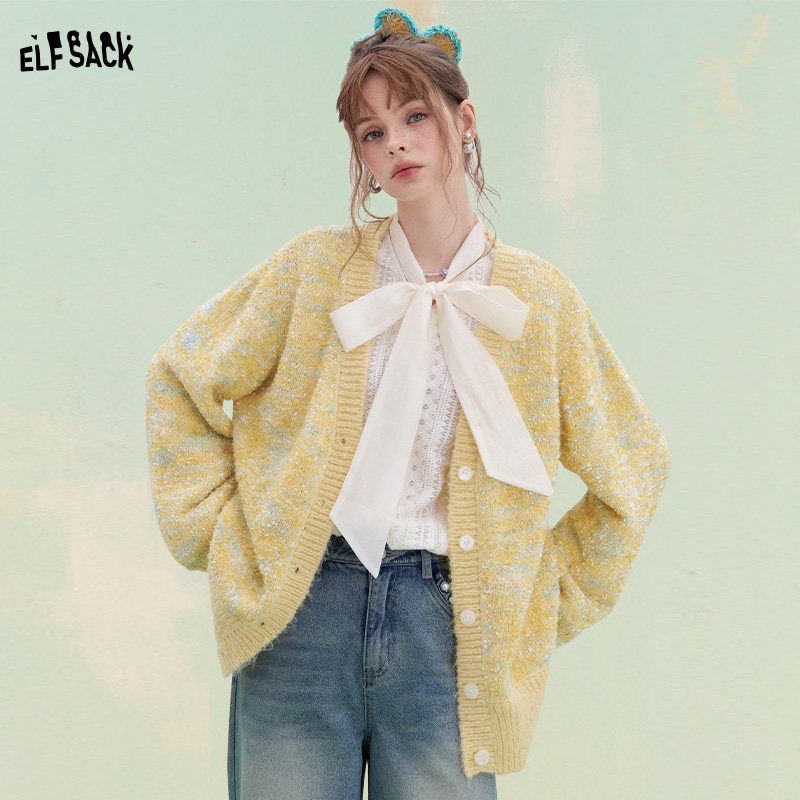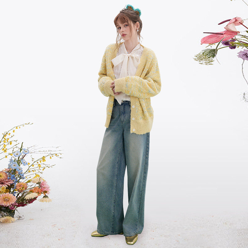 【现货】IHDXD 立体花朵针织小衫2026年春夏拼接长袖V领针织上衣