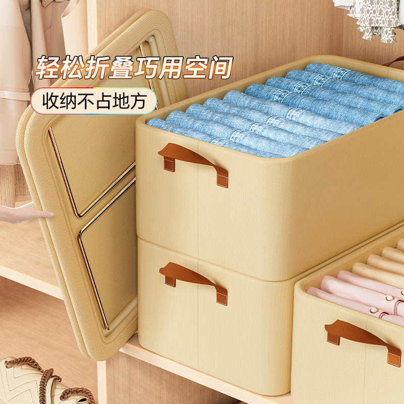 衣服收纳箱家用衣柜分层整理盒放衣物裤子布艺棉麻折叠储物筐神器