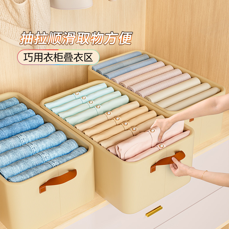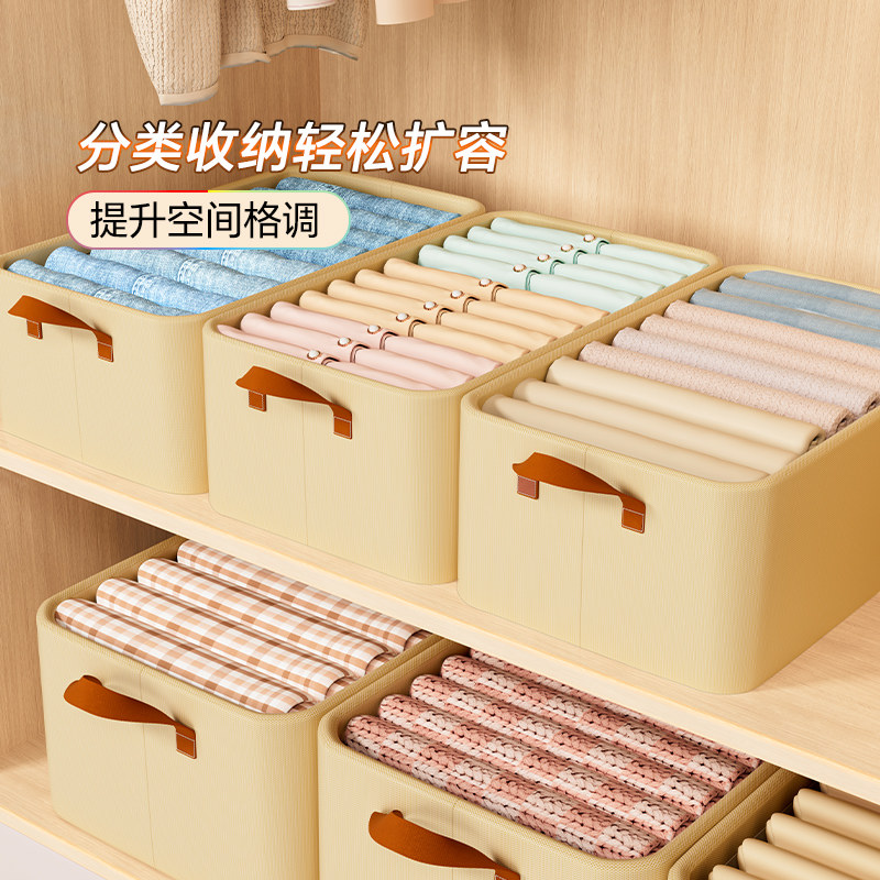 拍1发4衣服收纳筐神器布艺装衣物衣柜分层收纳箱家用框裤子整理盒